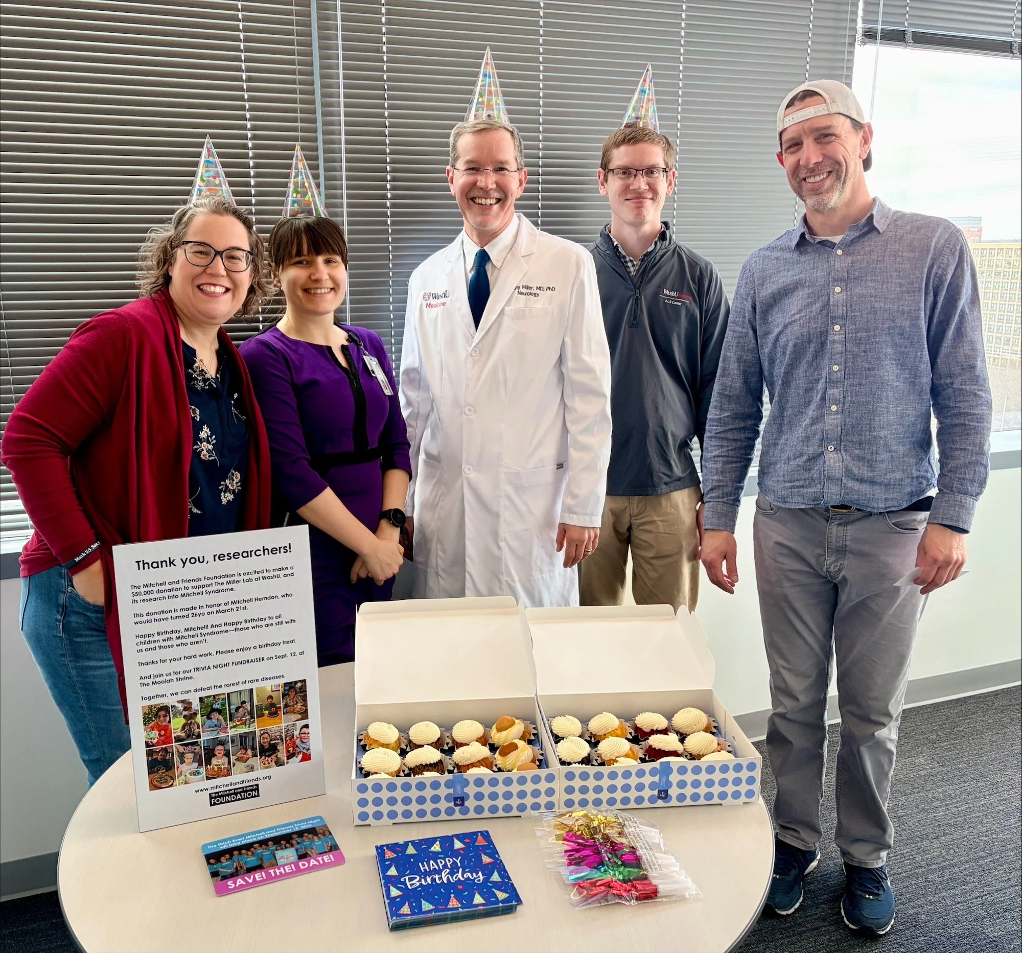 Thanks to the generosity of friends and supporters, we are pleased to announce another $50,000 donation to The Miller Lab at WashU in St. Louis, to support their research into Mitchell Syndrome and possible treatments. This donation will help Dr. Tim Miller and Dr. Zita Hubler and their team of scientists as they investigate Mitchell Syndrome and develop ASO treatments for this deadly neurological disease.
